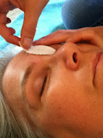 Once you are done waxing both brows to your liking...remember more can be takin off later, but glueing bald spots on looks pretty funny ha ha...apply a small dab off Wax Off to a cotton ball or a piece of the strip and remove any wax left behind (don't forget that lil test patch on your wrist)